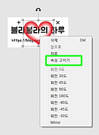 추가한 하트 아이콘의 색깔이 너무 진한 것 같다고 생각하신다면 속성 고치 기를 통해서도 변경할 수가 있습니다.