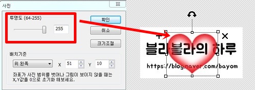 투명도 값을 어떻게 설정하느냐에 따라서 하트 모양이 진해지고 흐려지는 것을 확인할 수 있습니다.