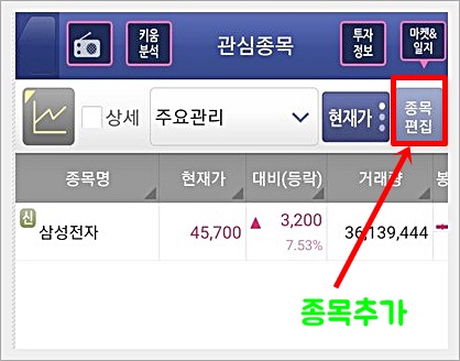 관심종목 설정은 보시는 바와 같이 종목 편집에서 할 수가 있습니다.