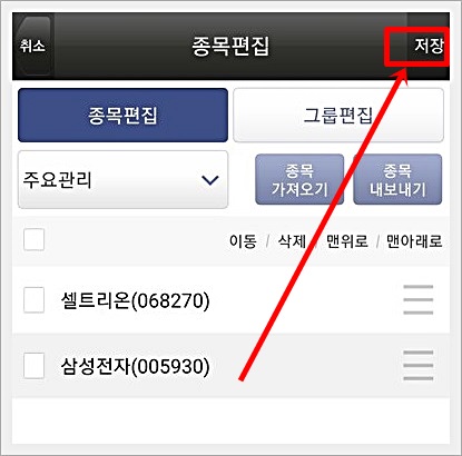 그룹별로 나눠서, 제약, 건설, 대장주 등으로 편집을 하셔도 좋고요.