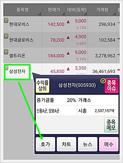 양웅문 시세알람을 설정하기 의해서는 가장 먼저 자신이 알림을 받고자 하는 종목의 호가창으로 들어가시면 됩니다.