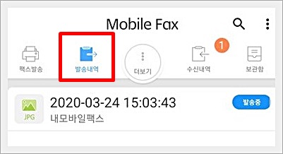 좀 전에 보낸 팩스가 현재 발송 중이라고 나와있는 것도 보입니다.