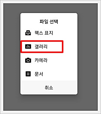 갤러리에 있는 사진 혹은 문서들 중에서 하나를 선택해서 첨부를 했습니다.