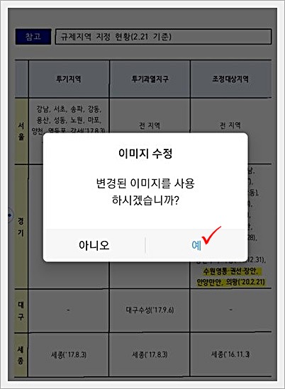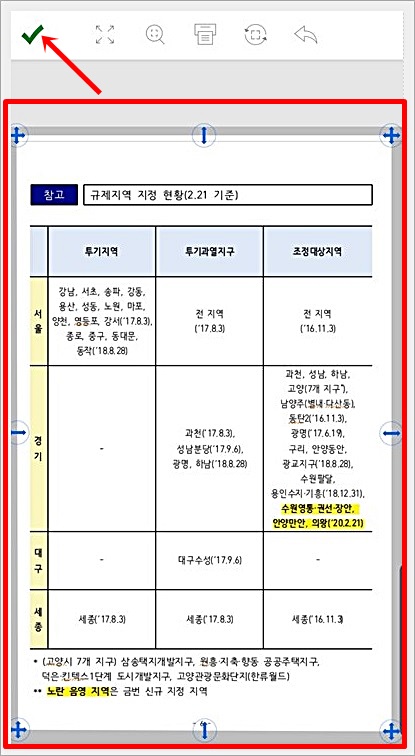 사이즈를 다 맞췄다면 좌측 상단에 있는 체크표시 버튼을 누르면 됩니다.
