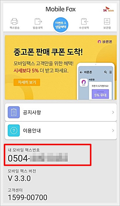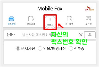 가운데 있는 더보기 버튼을 누르면 자신만의 팩스번호를 확인할 수 있으니 팩스 수신이 필요할 때는 알려주시면 되겠죠.