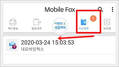 이번에는 수신 내역을 살펴보니 방금 막 팩스가 도착했다는 문자 알림이 온 것을 알 수 있습니다.