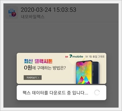 해당 팩스를 열어보니 팩스 데이터 다운로드 중이라는 안내와 함께 곧이어 좀 전에 첨부한 팩스가 도착한 것을 확인할 수 있습니다.