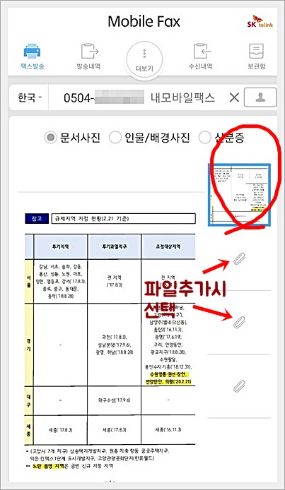 먼저 팩스를 수신할 상대방의 팩스번호를 적어주신 다음 발송할 내용물을 첨부해 주시면 됩니다.