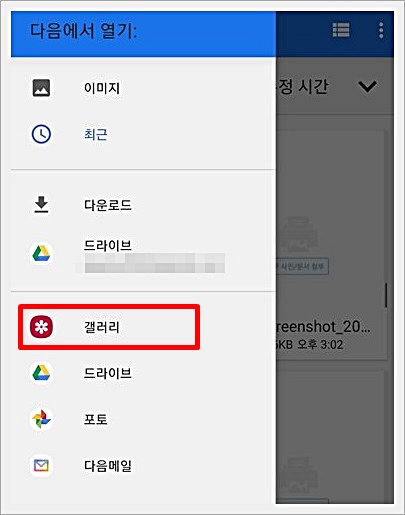 갤러리에 있는 사진 혹은 문서들 중에서 하나를 선택해서 첨부를 했습니다.
